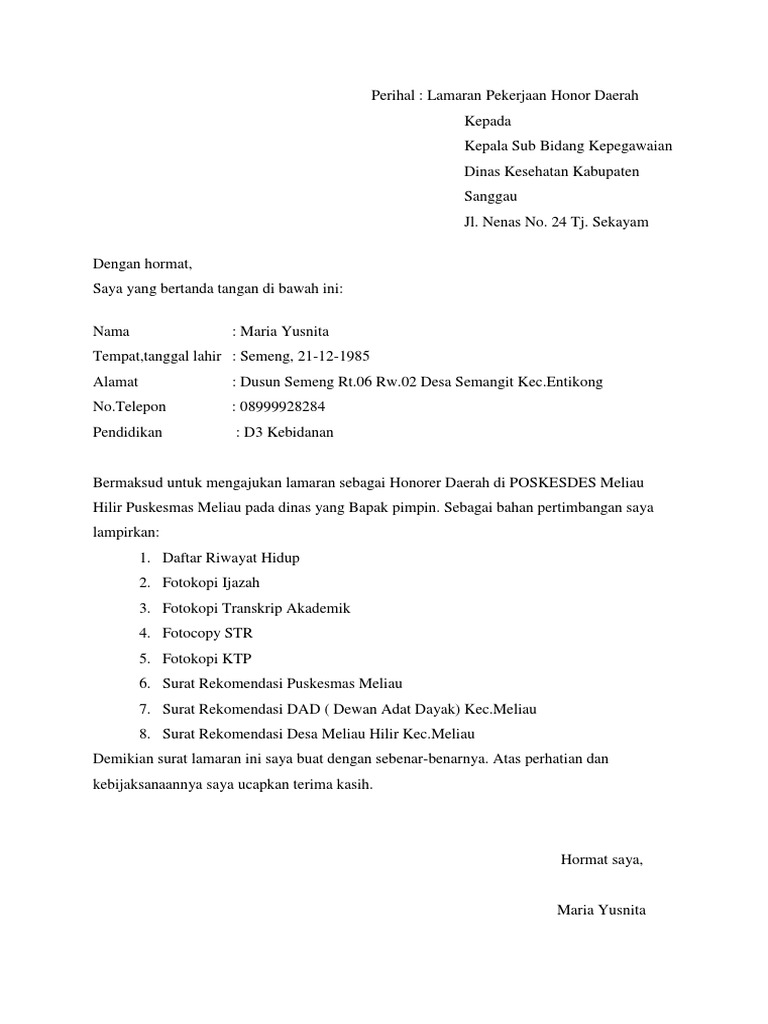 Contoh Surat Lamaran Kerja Ke Dinas Kesehatan Kabupaten Sanggau / Lpse Kabupaten Sanggau Rup Dinkes 2017 : Agus suryadi tempat/tanggal lahir :. Playen rt 1 / rw 1 kecamatan playen, kabupaten gunungkidul 53192 agama : Mengenai surat lamaran kerja, memanglah penting bagi kamu para calon karyawan atau kamu yang ingin resign dan ingin pindah pekerjaan ke pekerjaan yang lainnya, maupun fresh graduate. Gunungkidul, 3 januari 1992 alamat : Menulis surat pekerjaan memang merupakan urusan yang mudah. Untuk itu tak lupa saya menyampaikan banyak terima kasih.