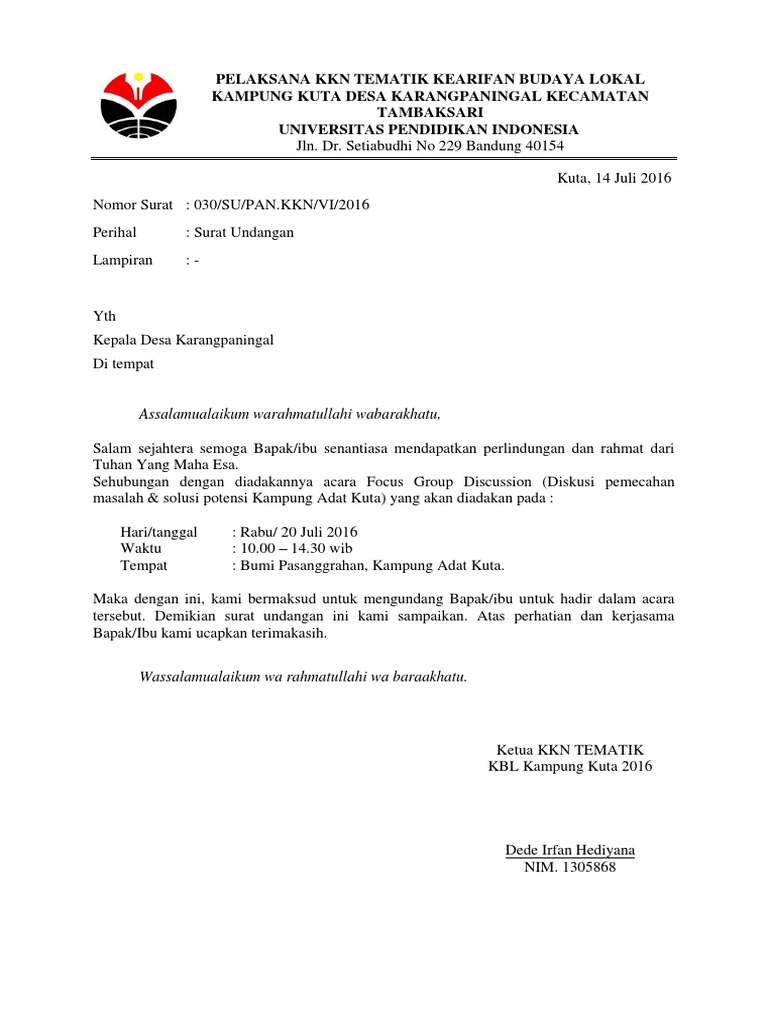 Contoh Surat Undangan Fgd from imgv2-1-f.scribdassets.com Artikel membahas tentang contoh surat undangan, mulai dari surat undangan resmi dan surat undangan tidak resmi. Contoh surat undangan resmi dapat digunakan agar surat undangan yang kamu buat sesuai surat undangan adalah salah satu surat yang memuat ajakan kepada seseorang atau kelompok bagian ini perlu dicantumkan secara jelas agar nama dan pihak utama yang dituju tidak terjadi. Nomor ini menandakan urutan keberapa surat dikeluarkan oleh instansi maupun organisasi. Contoh surat undangan resmi porseni. Beberapa jenis surat undangan yang sering dipergunakan, diantaranya adalah contoh surat undangan rapat, undangan resmi, undangan pernikahan, undangan ulang. #2 contoh surat undangan resmi sekolah. Undangan porseni (pekan olahraga dan seni). Dengan hormat, sehubungan dengan akan diselenggarakannya acara upacara adat tahunan desa mlati, diperlukan beberapa persiapan demi kelancaran contoh surat undangan acara pentas seni.